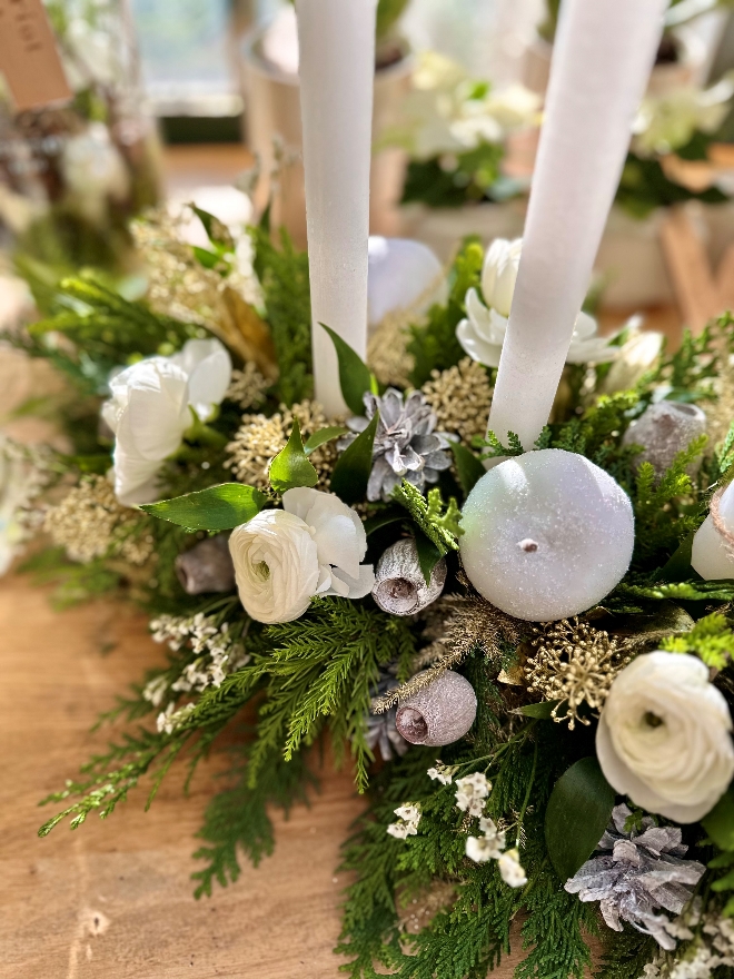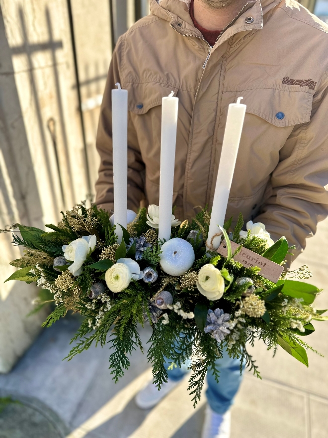 Les arrangements avec bougies sont très appréciés en décembre parce qu'ils créent une ambiance chaleureuse et qu'ils font tout simplement partie de l'Avent et de Noël. La maison Fleuriot utilise des bougies fabriquées par les Etablissements Publics Pour l’Intégration (EPI) à Genève, qui contribuent à l’intégration sociale et/ou professionnelle de personnes en situation de handicap, en difficulté d’insertion professionnelle ou sociale. Conseils pour profiter durablement de cet arrangement de bougie et pour éviter tout incident : La maison Fleuriot vous recommande de la disposer au frais lorsque c’est possible, de vaporiser les éléments naturels inflammables avant d’allumer les bougies. Observez la plus grande prudence lorsque les bougies