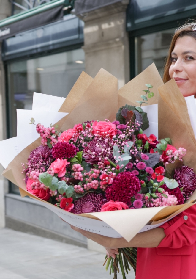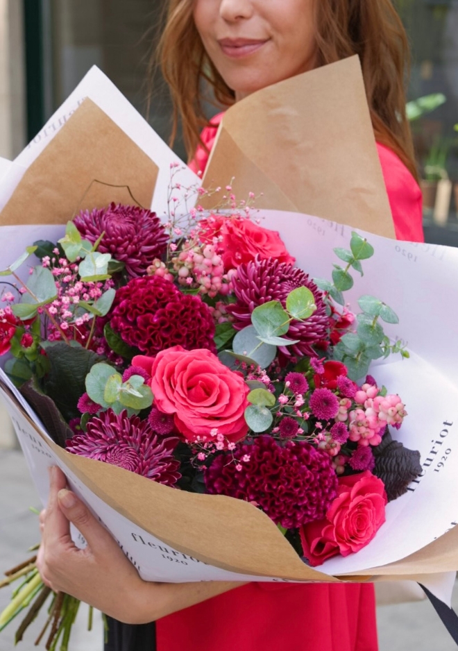 Pink by Val Un bouquet vibrant et audacieux qui rend hommage au mois d’octobre et à toutes les femmes. Composé de somptueuses roses Full Monty fuchsia, de célosies cerise, de chrysanthèmes Bigoudi Purple et de fleurs de saison, Pink by Val célèbre la féminité et ses combats avec élégance et caractère. En complément de notre récolte de dons liée au bouquet Octobre Rose, nous avons imaginé ce bouquet décliné en trois formats pour s’adapter à toutes vos envies. 💡 Tips d’octobre : installez votre bouquet au centre de la table, préparez un pumpkin spice latte maison et lancez un épisode de Gilmore Girls pour une ambiance automnale parfaite. Pour ce mois symbolique, nous avons également le plaisir de collaborer avec Val, influenceuse et blogueuse beauté basée à Genève (@valbeautes). Sur notre compte Instagram @fleuriot_1920, elle vous offre la chance de gagner un bouquet Pink by Val et de partager à votre tour un message de soutien et d’élégance.