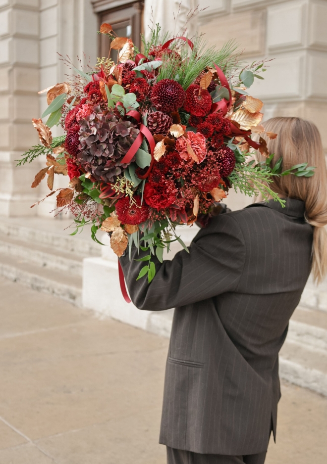Bouquet de 5 Amaryllis avec Ilex rouge