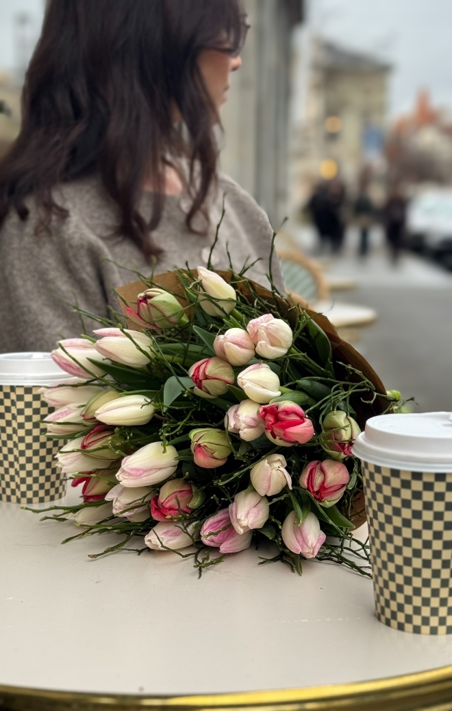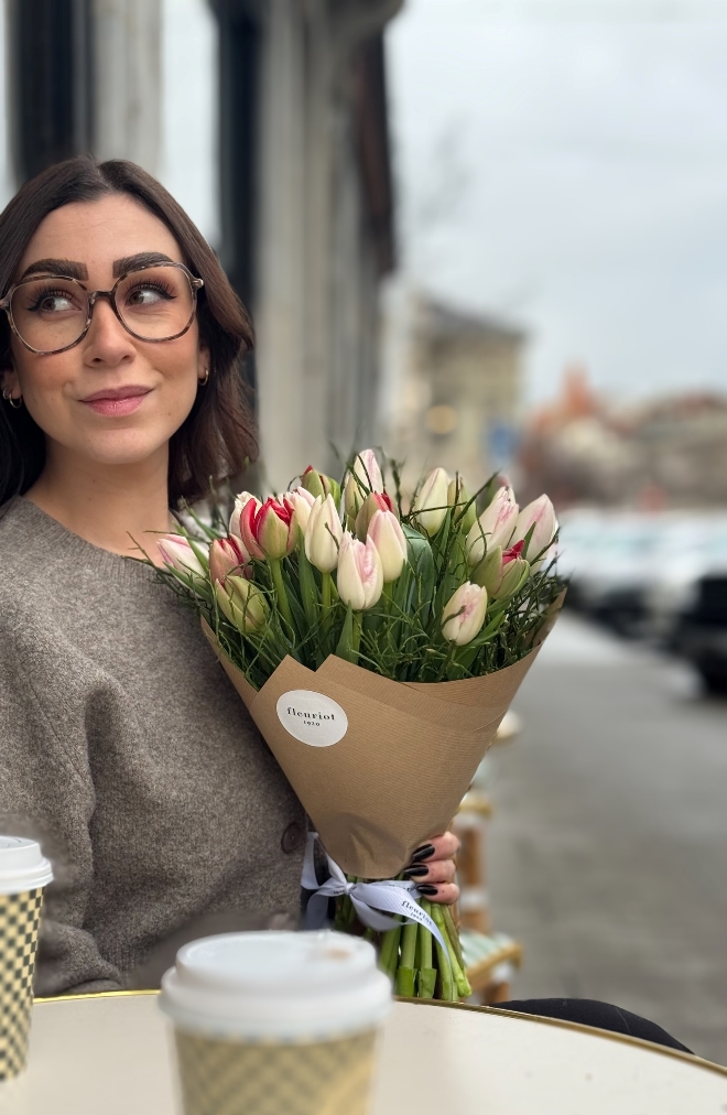 Une composition florale qui murmure la beauté des beaux jours. Composé de 30 tulipes, ce bouquet séduit par ses teintes équilibrées, imaginées par Fleuriot au fil des saisons. Des fleurs locales et responsables, Genève Région Terre Avenir, pour un instant de poésie florale. Comment entretenir votre bouquet de tulipes : Pour profiter pleinement de votre bouquet de tulipes, recoupez les tiges bien droites d’environ 1 à 2 cm dès réception, à l’aide d’un outil propre. Placez-les ensuite dans un vase avec peu d’eau fraîche (5 à 7 cm), que vous changerez régulièrement afin de préserver leur fraîcheur. Installez le bouquet dans un endroit lumineux, mais à l’abri du soleil direct, des sources de chaleur et des fruits. Les tulipes continuent à pousser et à se mouvoir naturellement dans le vase : ce mouvement fait partie de leur charme. Pour les aider à rester bien droites, vous pouvez les laisser quelques heures dans leur emballage après les avoir mises en eau. Les tulipes n’ont pas besoin de nourriture pour fleurs : une eau propre et renouvelée suffit.