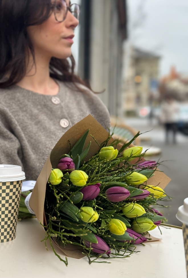 Un souffle de printemps, tout en délicatesse. Ce bouquet de 20 tulipes révèle une harmonie de couleurs choisies avec soin par Fleuriot, selon la disponibilité. Cultivées localement et labellisées Genève Région Terre Avenir, ces tulipes apportent fraîcheur et douceur à votre intérieur. Comment entretenir votre bouquet de tulipes : Pour profiter pleinement de votre bouquet de tulipes, recoupez les tiges bien droites d’environ 1 à 2 cm dès réception, à l’aide d’un outil propre. Placez-les ensuite dans un vase avec peu d’eau fraîche (5 à 7 cm), que vous changerez régulièrement afin de préserver leur fraîcheur. Installez le bouquet dans un endroit lumineux, mais à l’abri du soleil direct, des sources de chaleur et des fruits. Les tulipes continuent à pousser et à se mouvoir naturellement dans le vase : ce mouvement fait partie de leur charme. Pour les aider à rester bien droites, vous pouvez les laisser quelques heures dans leur emballage après les avoir mises en eau. Les tulipes n’ont pas besoin de nourriture pour fleurs : une eau propre et renouvelée suffit.