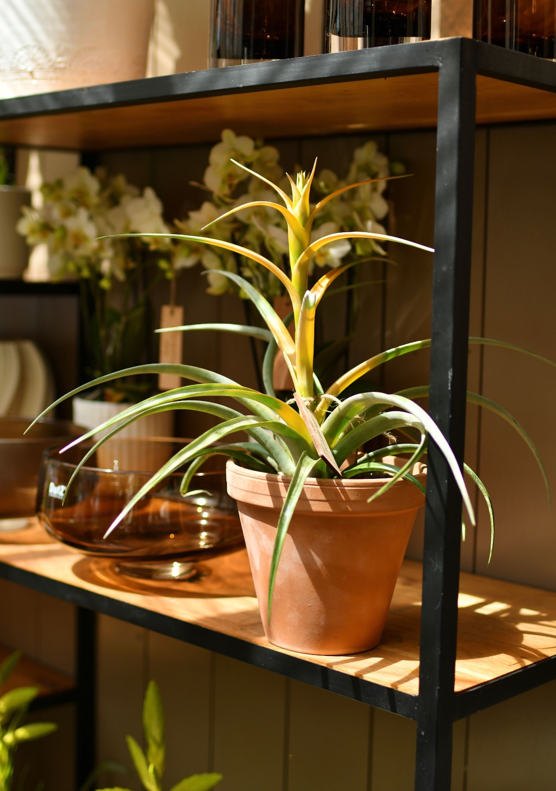 Tillandsia jaune – Légèreté et éclat Plante aérienne par excellence, le Tillandsia jaune séduit par ses formes originales et sa floraison lumineuse.
