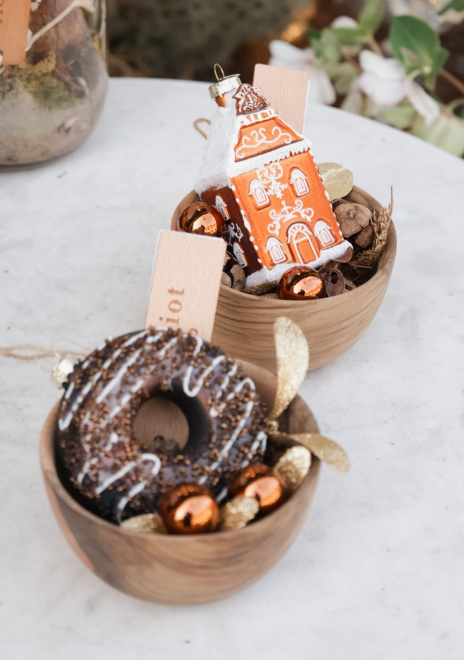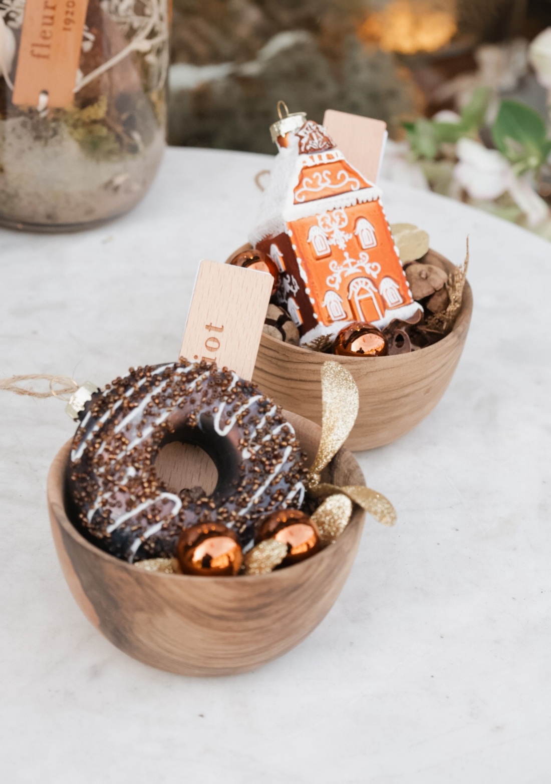 Ce duo de bols en bois d’olivier du Maroc célèbre la beauté des matières naturelles et la chaleur du thème “Praliné”. Chacun est décoré de boules et d’éléments festifs aux teintes douces de caramel, chocolat au lait et doré, évoquant la gourmandise et la convivialité des fêtes. Pièces uniques, sculptées dans un bois noble aux veines dorées, ces bols ajoutent une touche authentique et chaleureuse à votre décoration de table ou de salon. Un duo raffiné et artisanal, parfait pour prolonger l’esprit doux et lumineux du thème Praliné.