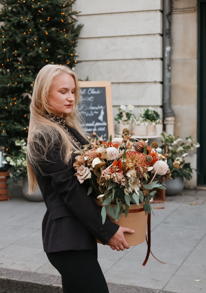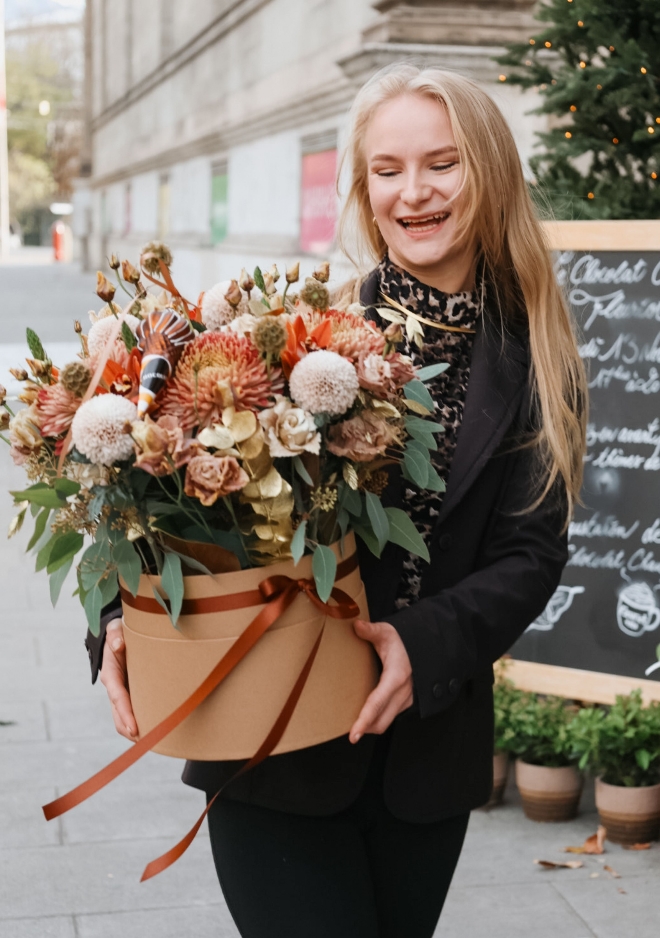 La boîte Fondant révèle un délicieux mélange de fleurs aux nuances chocolatées, entre caramel, moka et cacao clair. Sa palette chaleureuse et gourmande évoque la douceur d’un chocolat fondant, pour une création élégante, raffinée et pleine de réconfort. Parfaite à offrir ou à poser en centre de table, Fondant apporte une touche chaleureuse et délicate à votre intérieur — un véritable bouquet gourmand pour célébrer la saison.