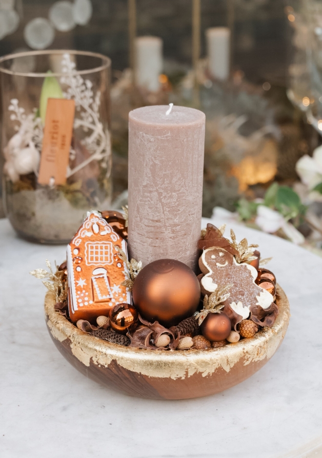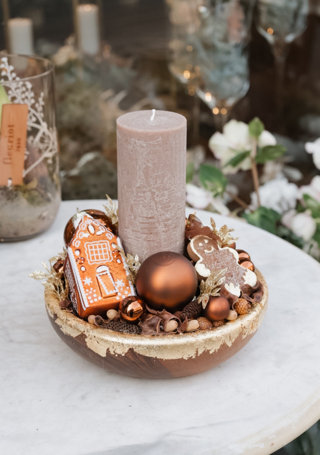 Naturel et raffiné, l’arrangement Biscuit évoque la chaleur simple et réconfortante d’un après-midi d’hiver. Présenté dans un superbe bol en bois d’olivier marocain, chaque pièce est unique, révélant la beauté naturelle du bois et de ses veines dorées. Au centre, une bougie beige diffuse une lumière douce et apaisante, dans l’esprit délicat du thème “Praliné”. Un arrangement qui marie authenticité, élégance et artisanat, pour un intérieur à l’atmosphère chaleureuse et raffinée.