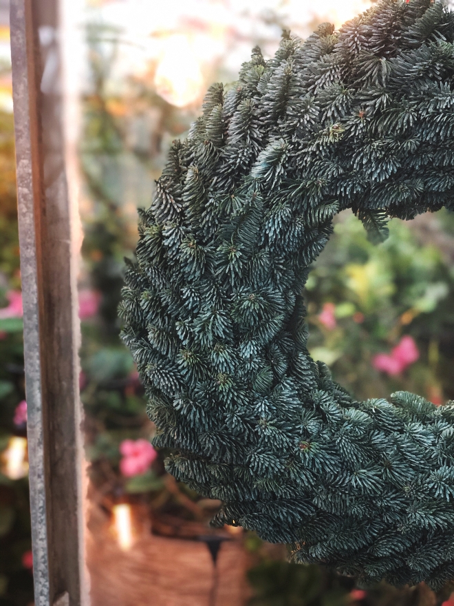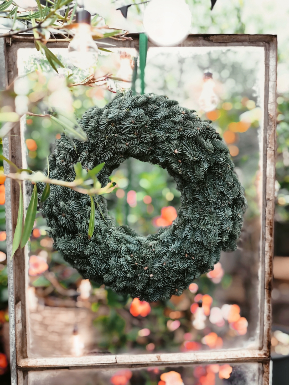 Une couronne en sapin bleu ( Pinus nobilis ) tourné à la main sur un paillon, idéal pour décorer votre porte d'entrée ou encore composer votre couronne de l'Avent. Ce sapin bleu, d'un vert froid, a une bonne durabilité et sèche très bien. Pour bien tenir votre couronne, mettez la au frais la nuit, sur votre balcon, afin de garder les épines jusqu'à Noël. Ce paillon fait 30cm de diamètre environ.