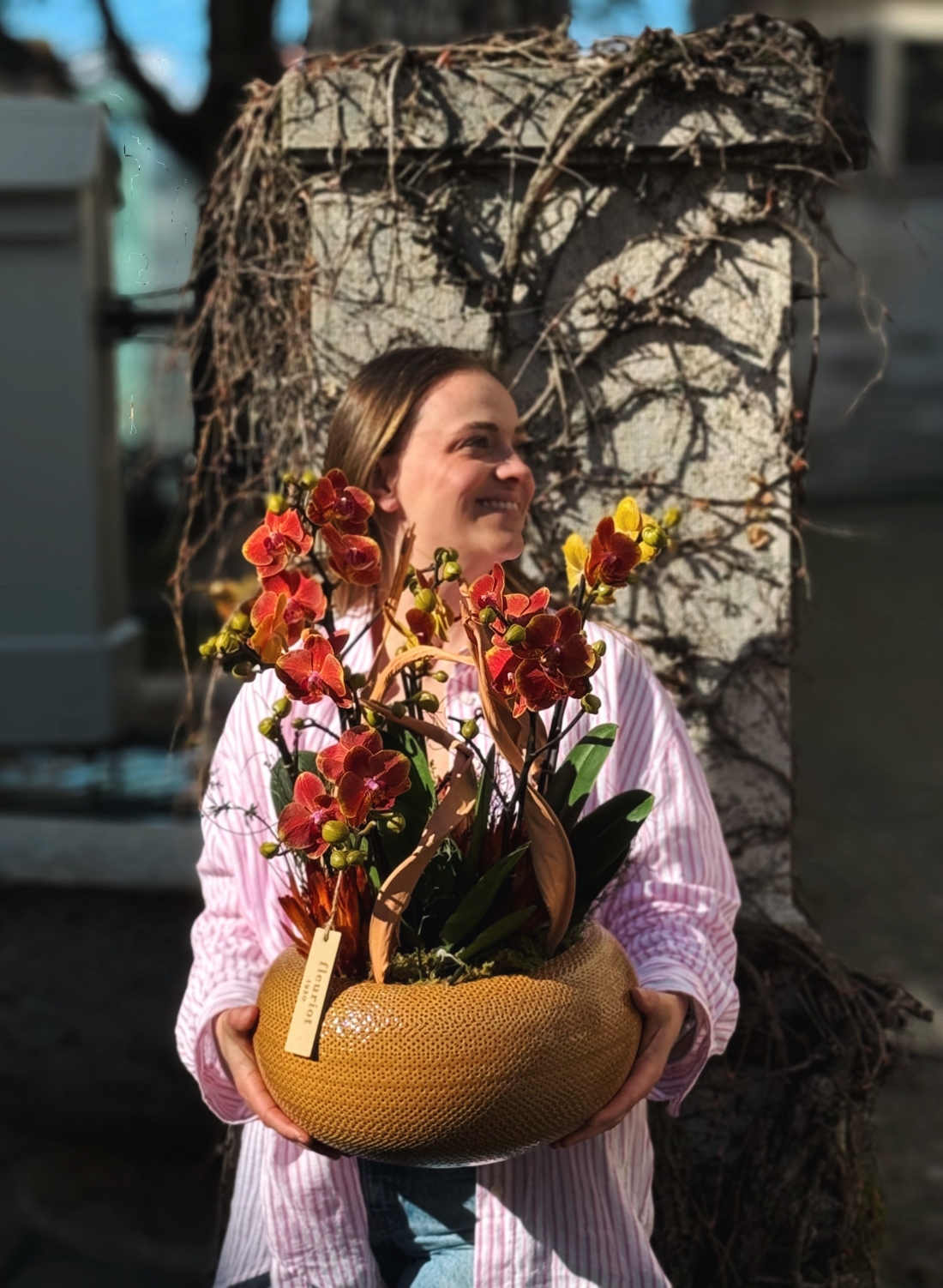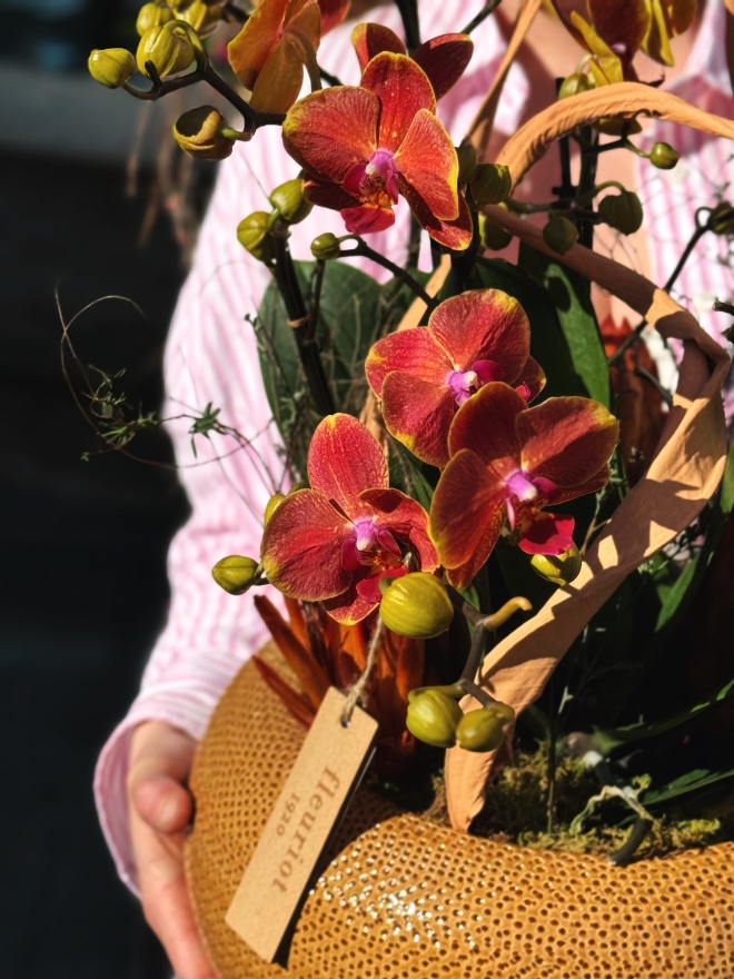Les orchidées Phalaenopsis sont tout simplement trop mignonnes pour ne pas les offrir, avec leurs fleurs délicates et leur élégance naturelle! Guide d’entretien des orchidées Phalaenopsis Lumière : Placez la plante dans un endroit lumineux sans soleil direct. Arrosage : Arrosez une fois par semaine et laissez bien égoutter. Ne laissez pas d’eau stagnante dans le cache-pot. Température : Idéalement entre 18 et 24°C. Évitez les courants d’air froid. Humidité : Apprécie une humidité modérée. Après la floraison : Coupez la tige florale au-dessus du deuxième ou troisième nœud pour favoriser une nouvelle floraison. Veuillez noter que les plantes ne peuvent pas être livrées dans les hôpitaux suisses. Nous vous invitons à choisir un produit dans 'Nos Bouquets'.