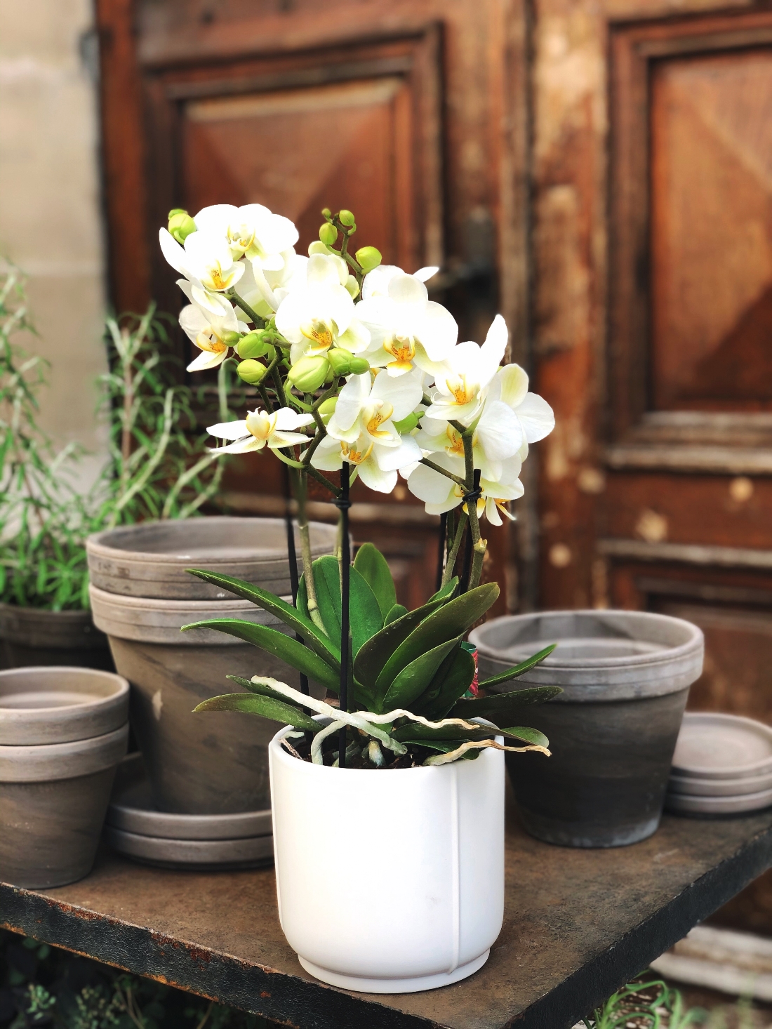 Notre orchidée classique avec ou sans bougie, pour un cadeau réussi ! Les orchidées Phalaenopsis aiment beaucoup la lumière naturelle, mais évitez toutefois le plein soleil. Donnez de l’eau tiède (équivalent d’un petit verre à vin blanc), non-calcaire, une fois par semaine au pied de chaque plante. Attention aux excès d’eau, l’eau ne doit pas stagner dans le pot. Les orchidées ne tolèrent pas les courants d'air. Le Phalaenopsis tire très peu d’éléments nutritifs de son substrat. Apportez-lui de l’engrais spécial orchidées tous les quinze jours en été et une fois par mois le reste de l’année. Les plantes ne sont pas acceptées dans les hôpitaux. Fleuriot fleurs, fleuriste Genève