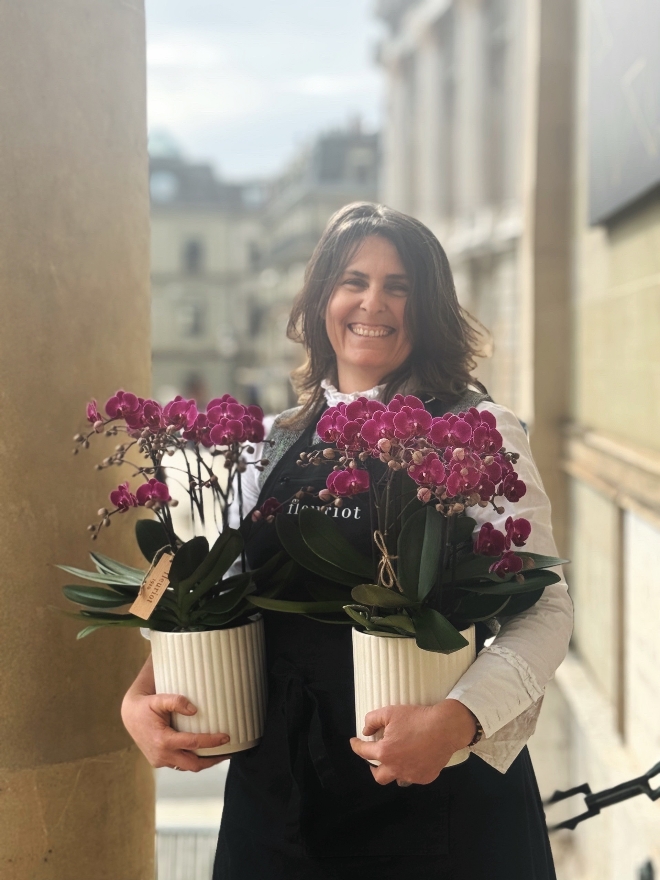 Phalaenopsis fuchsia dans cache-pot