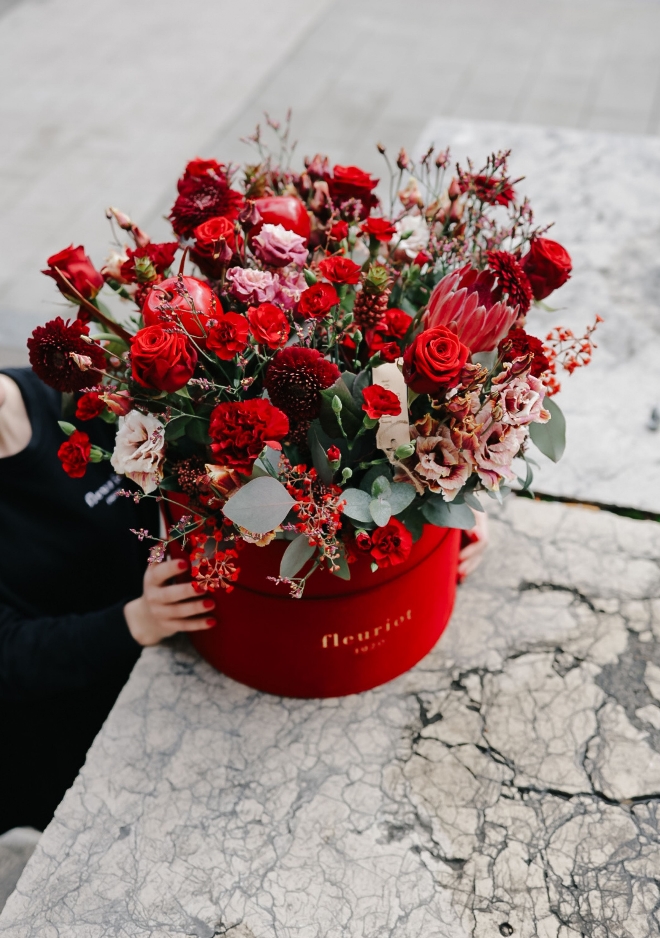 Intense et captivante, la boîte Red Crush incarne la passion dans toute sa profondeur. Présentée dans un somptueux écrin en velours rouge, cette création florale révèle un mélange harmonieux de fleurs rouges aux textures et nuances variées. Roses veloutées, fleurs de saison aux tonalités carmin et bordeaux, chaque élément est soigneusement sélectionné et assemblé par nos fleuristes afin de créer un équilibre raffiné entre intensité et élégance. À la fois moderne et intemporelle, Red Crush est une déclaration forte, idéale pour marquer les esprits et sublimer les moments précieux.