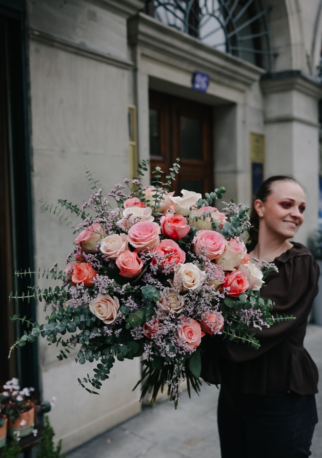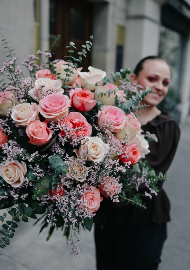 Ce bouquet XXL de roses mixtes est une véritable explosion de douceur et d’intensité. Il réunit de somptueuses roses dans des nuances de rose poudré, saumon délicat et fuchsia vibrant, subtilement accompagnées de limonium Oshi Pink. Généreux et spectaculaire par son volume, il joue avec les dégradés et les textures pour créer une présence florale remarquable. Le limonium apporte une touche aérienne et lumineuse, soulignant la richesse des roses et renforçant l’effet vaporeux de l’ensemble. Une composition audacieuse et féminine, pensée pour illuminer un espace et marquer les esprits.