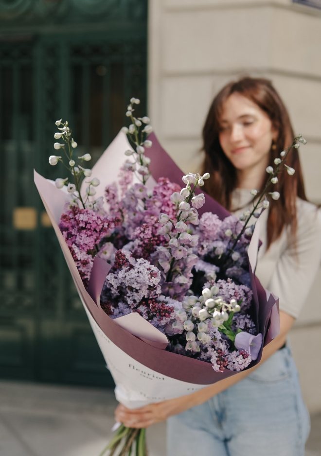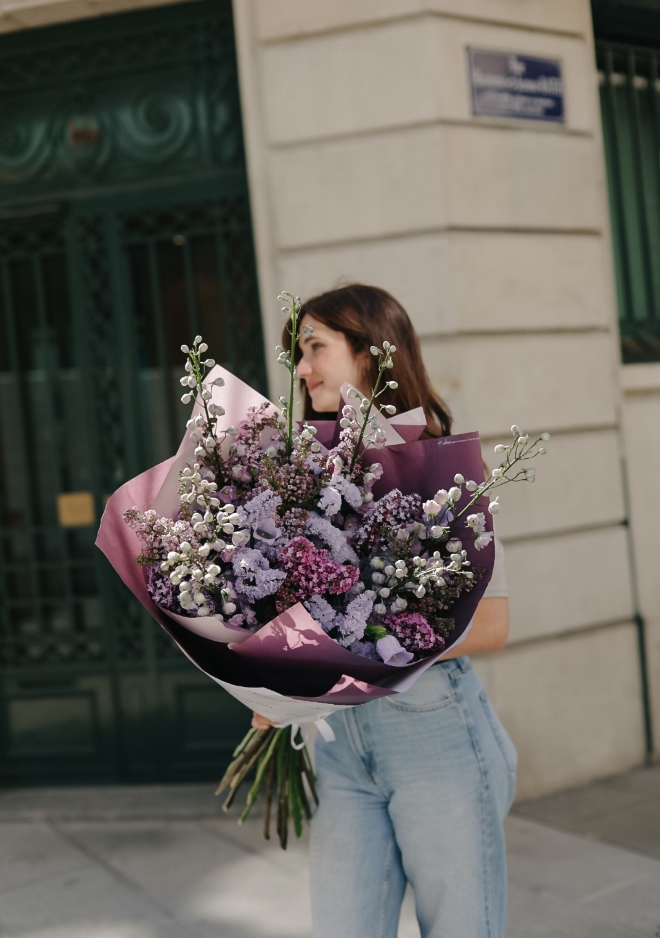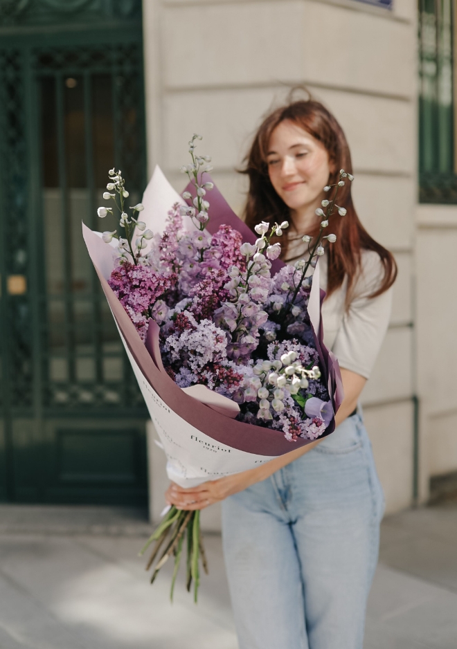 otre bouquet à longues tiges Lavender Haze, proposé en édition limitée, réunit les plus beaux lilas de Genève, de superbes delphiniums violets et de délicates campanules lavande. Avec sa hauteur généreuse d’environ 70 cm, ce bouquet élégant est idéal pour sublimer un grand espace. Il diffuse éclat, fraîcheur et le parfum délicat du lilas partout où il trouve sa place.