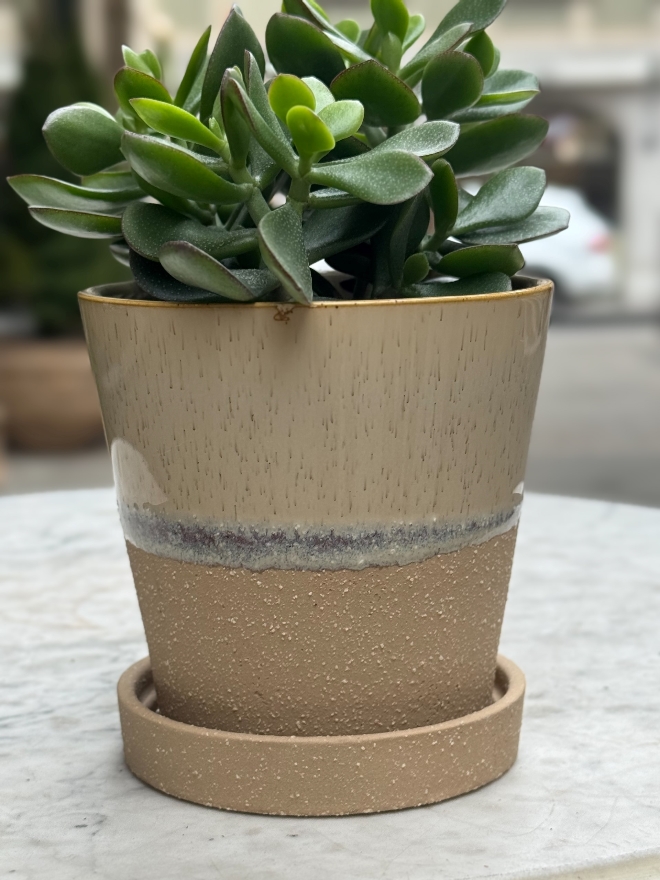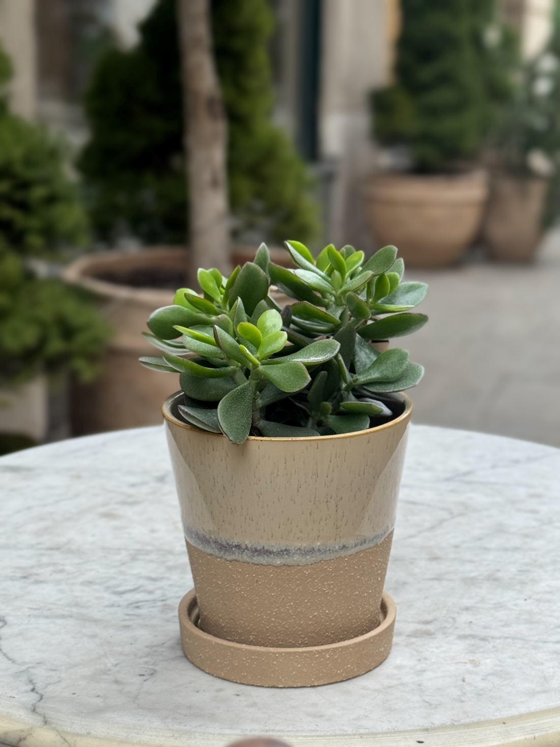 Crassula Ovata ou arbre de Jade Le crassula est une plante d’intérieur succulente qui offre un étonnant feuillage persistant, pour une ambiance déco et tendance. Le crassula est originaire d’Afrique du Sud et s’adapte aux climats doux. Il est préférable de cultiver votre crassula en intérieur si vous craignez le gel. Il ne résiste en effet pas aux moindres températures négatives. Le crassula d’intérieur redoute les situation de soleil direct, comme derrière une fenêtre exposée plein sud. Cela aura pour effet de brûler ses feuilles. Il préférera les situations lumineuses mais sans soleil direct. Evitez la proximité d’un radiateur qui pourrait assécher la plante ainsi que les pièces trop sombres car il ne poussera pas. L’arrosage du crassula est important car, comme toutes les plantes grasses, elle stock ce dont elle a besoin dans ses feuilles. Dans tous les cas, il est important d‘attendre que le sol soit très sec avant d’arroser mais aussi de privilégier un bon arrosage plutôt qu’une multitude de petits arrosages. Il est donc inutile de trop arroser, il est parfois même préférable de l’oublier… Merci de bien noter que les plantes (avec de la terre) ne sont pas acceptées dans les hôpitaux suisses. Nous vous conseillons de choisir un article dans une des catégories suivantes : Bouquets ronds, arrangements, bouquets de roses, bouquets longues tiges.
