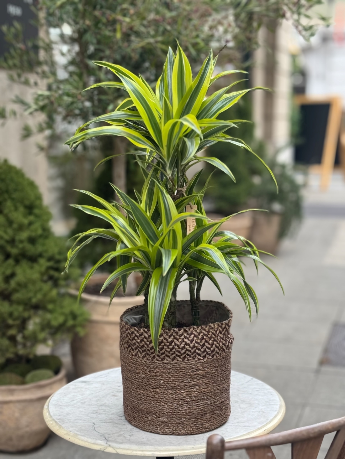 Le Dracaena est une plante d’intérieur élégante et facile d’entretien. Il préfère un emplacement lumineux sans soleil direct, mais s’adapte aussi à la mi-ombre. Arrosez modérément lorsque le terreau est sec en surface et évitez l’excès d’eau. Les températures ambiantes lui conviennent parfaitement et il n’apprécie pas les courants d’air froids. Merci de noter que les plantes (avec de la terre) ne peuvent pas être livrées dans les hôpitaux.