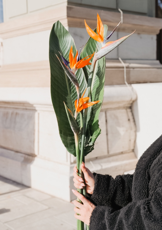 Faites-vous plaisir avec nos fleurs à la pièce : sélectionnez vos coups de cœur, mélangez, assemblez, et repartez avec un bouquet unique. Ou glissez simplement une jolie tige en plus de votre sélection, pour une attention qui fait toujours son effet. Et en ce moment, découvrez notre tige de Strelitzia et sa grande feuille graphique : une fleur sculpturale, aux couleurs éclatantes, qui apporte instantanément une touche exotique et moderne à vos compositions.