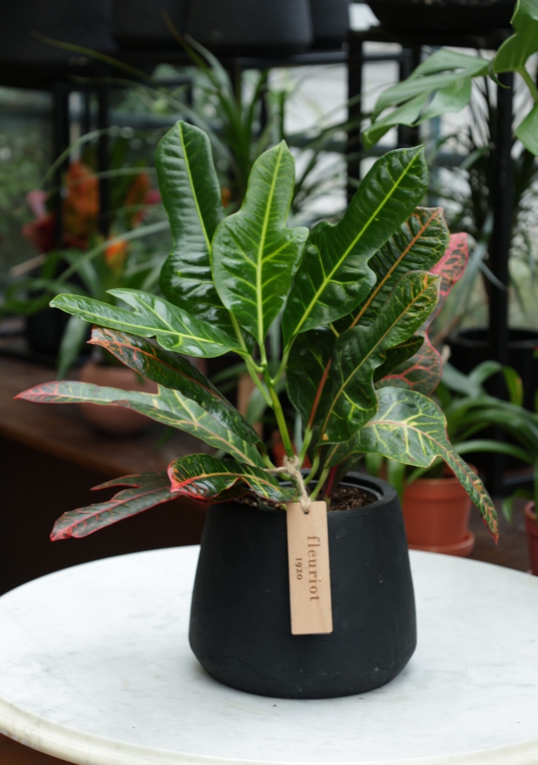 Le Codiaeum variegatum, plus connu sous le nom de Croton, est une plante d’intérieur spectaculaire grâce à son feuillage coloré et panaché. Ses feuilles allongées se déclinent en une palette flamboyante de vert, jaune, orange et rouge, apportant une touche exotique et lumineuse à tout intérieur. Originaire d’Asie du Sud-Est, le Croton aime la lumière vive (sans soleil direct trop brûlant) et une atmosphère chaude et humide. Il demande un arrosage régulier mais modéré, avec un sol légèrement humide. ✨ Le saviez-vous ? Le Croton est l’une des plantes les plus appréciées pour son pouvoir décoratif, proche d’une véritable œuvre d’art vivante. Ses couleurs deviennent plus intenses lorsqu’il est placé dans un environnement lumineux. Dans certaines cultures, il est considéré comme un symbole de vitalité et d’énergie. Un choix idéal pour apporter de la chaleur et du caractère à votre maison ou votre bureau.